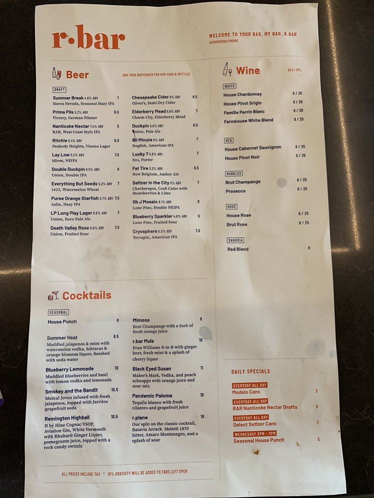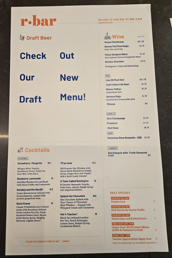 Welcome to R. House, a vibrant hub located in Baltimore that transcends the conventional dining experience. Here, you can savor a diverse menu featuring tacos, sushi, and more, all within a trendy atmosphere that's perfect for families and groups alike. R. House thrives on community spirit, making it a fantastic spot for brunch, lunch, or a laid-back dinner celebration.